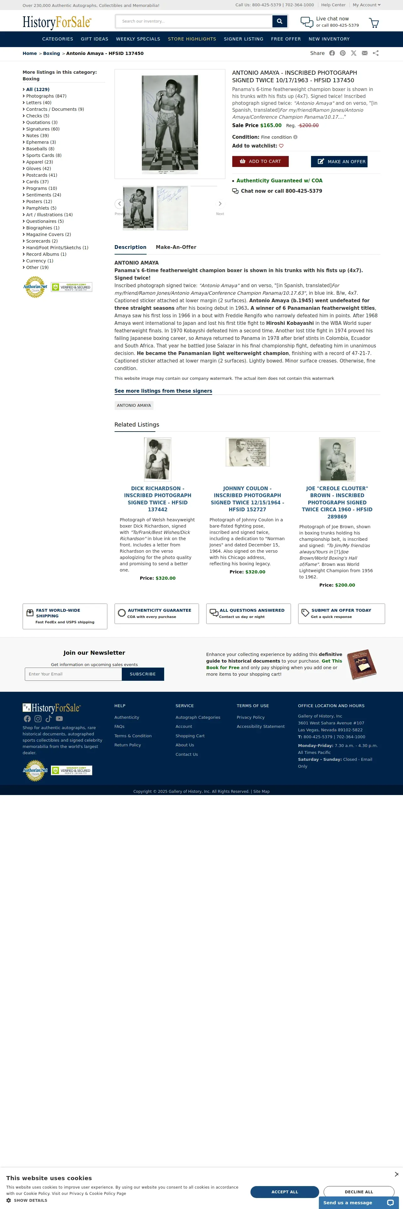 https://www.historyforsale.com:443/antonio-amaya-inscribed-photograph-signed-twice-10-17-1963/dc137450