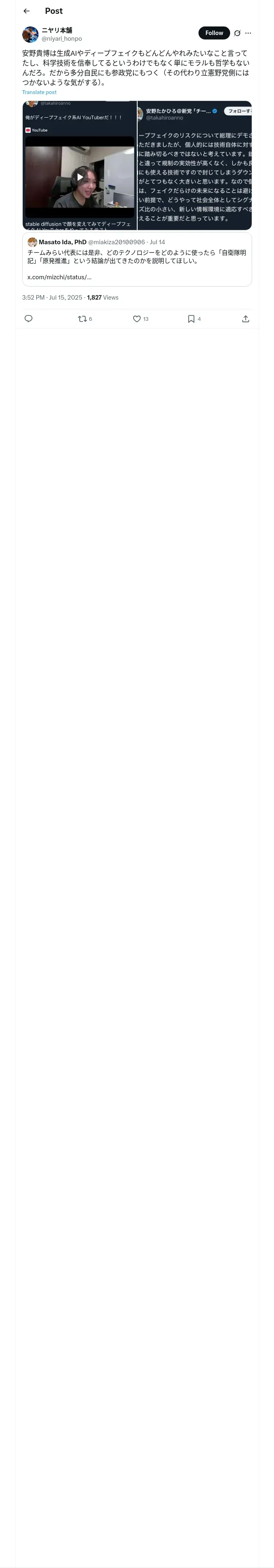 取得元URL: https://x.com:443/niyari_honpo/status/1945013540697379176
