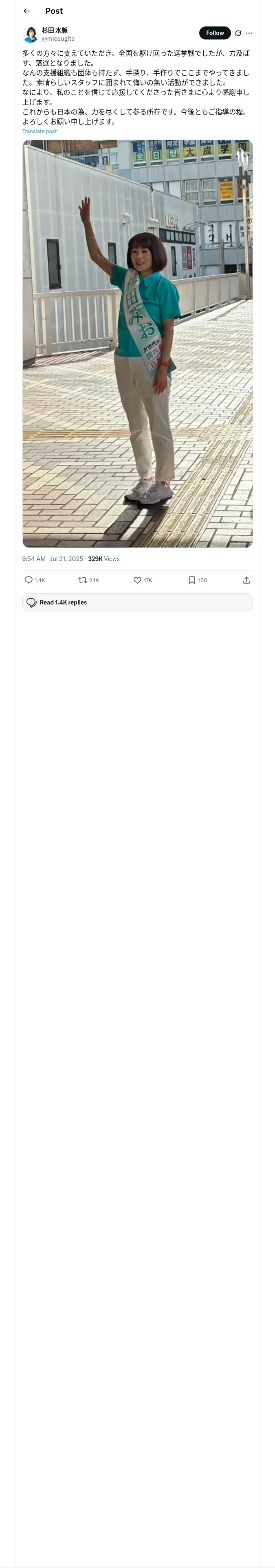 取得元URL: https://x.com:443/miosugita/status/1947052515549401253