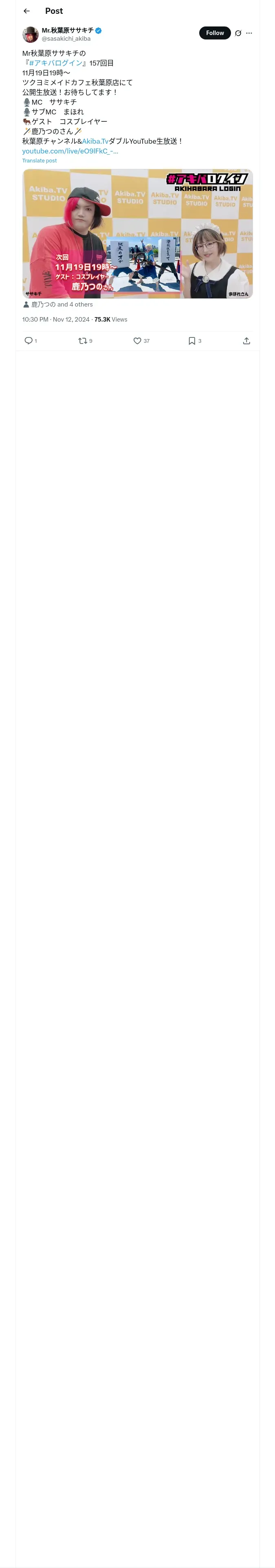 https://x.com:443/sasakichi_akiba/status/1856328681209376797