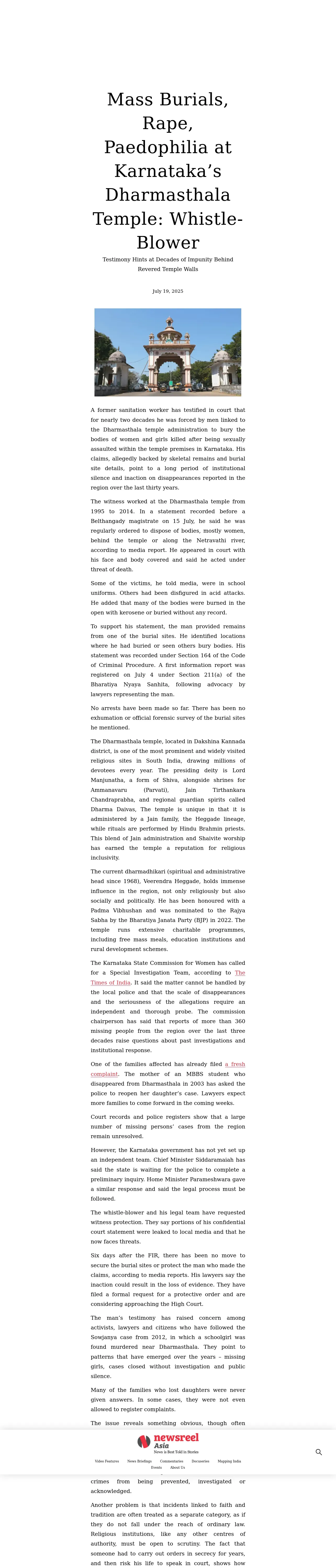 取得元URL: https://newsreel.asia:443/articles/dharmashtala-mass-burials-rape-paedophilia-whistle-blower