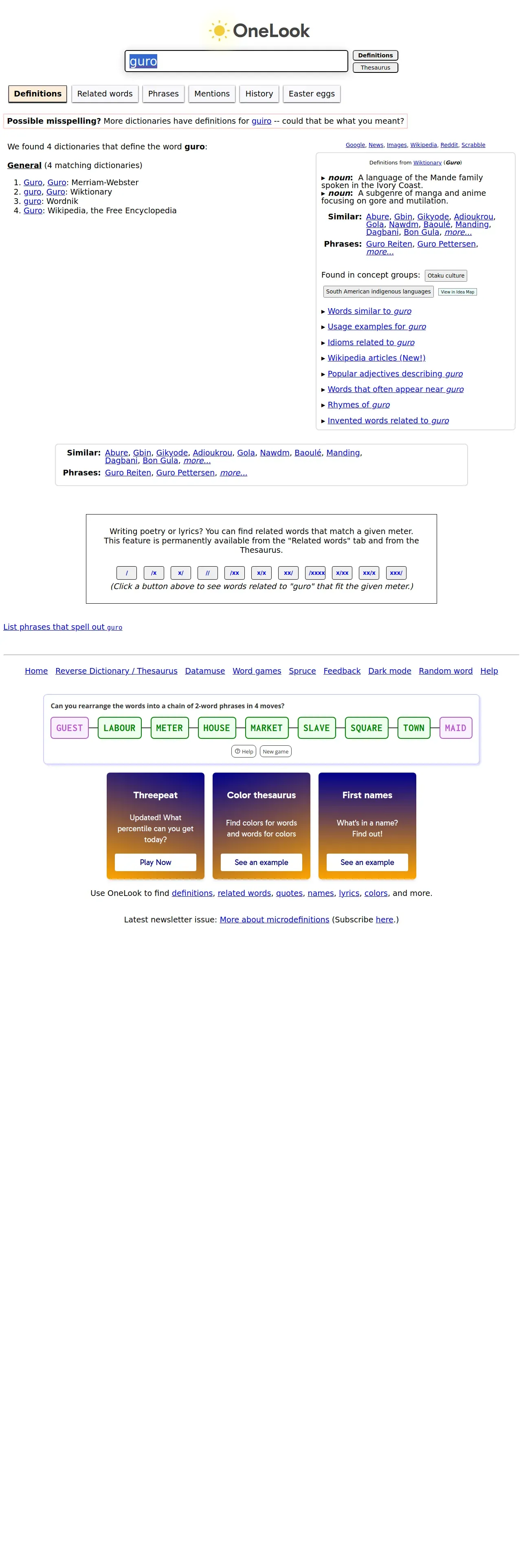 取得元URL: https://www.onelook.com:443/?w=guro