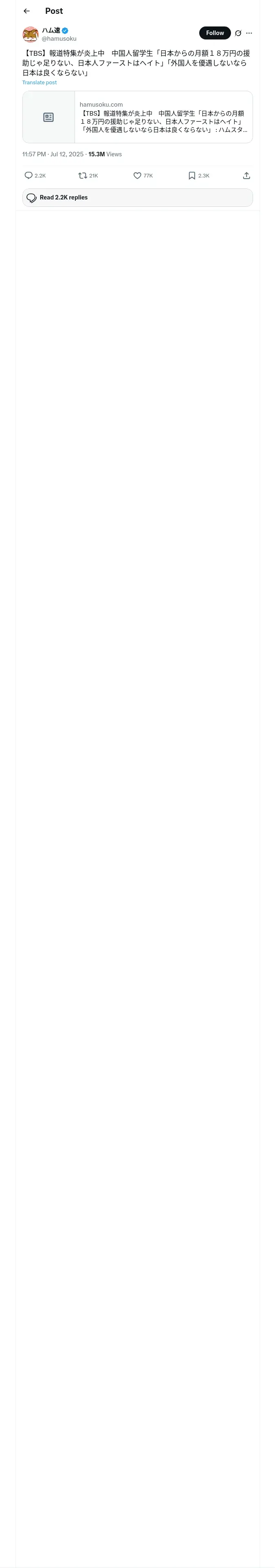 https://x.com:443/hamusoku/status/1944048430361489752