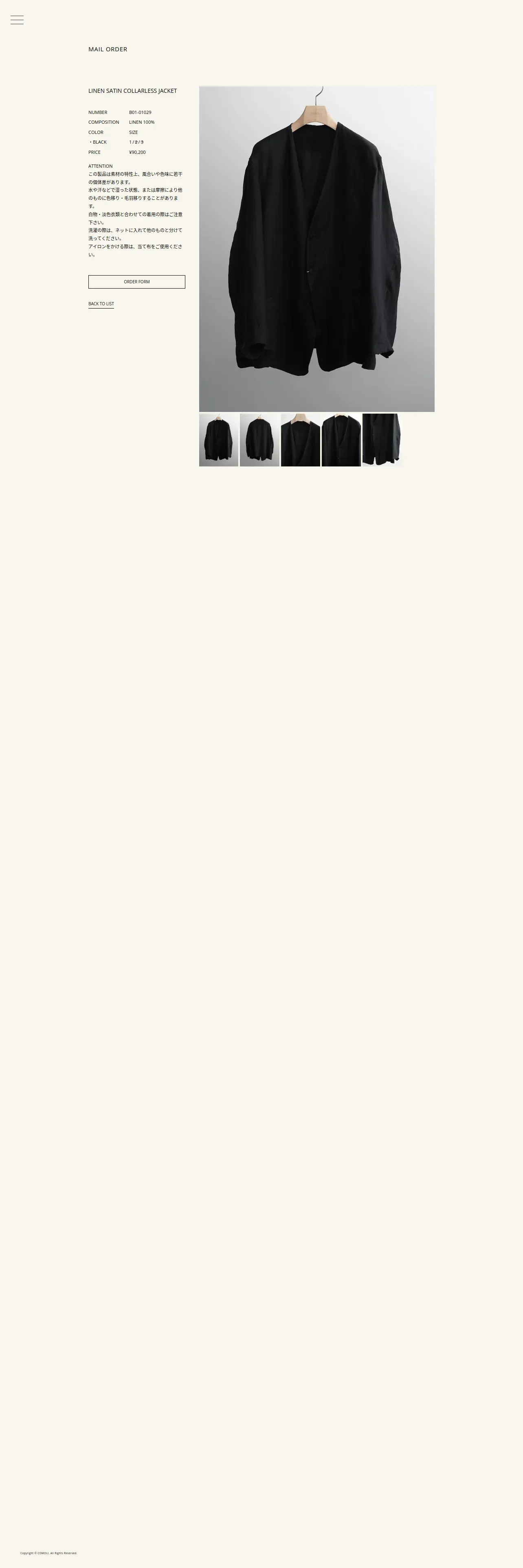 https://www.comoli.jp:443/mailorder/linen_satin_collarless_jacket_b