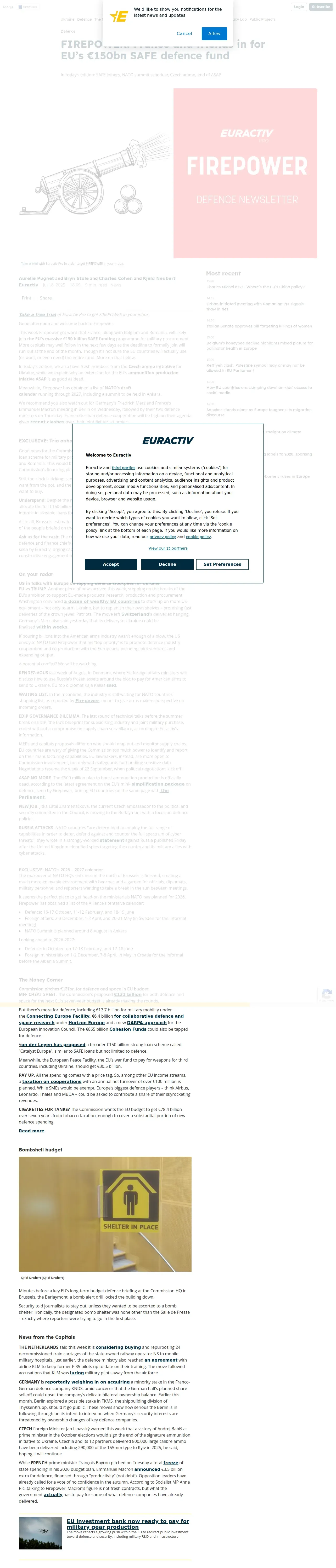 取得元URL: https://www.euractiv.com:443/section/defence/news/firepower-france-and-friends-in-for-eus-e150bn-safe-defence-fund/