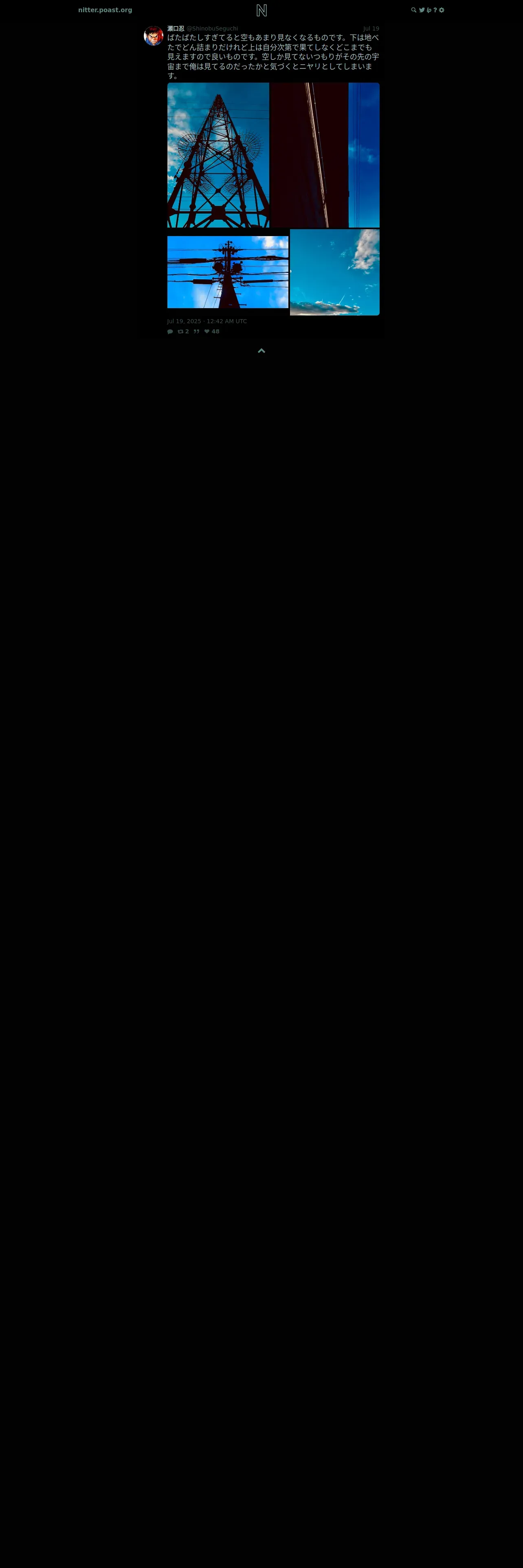 取得元URL: https://nitter.poast.org:443/ShinobuSeguchi/status/1946369937498579187