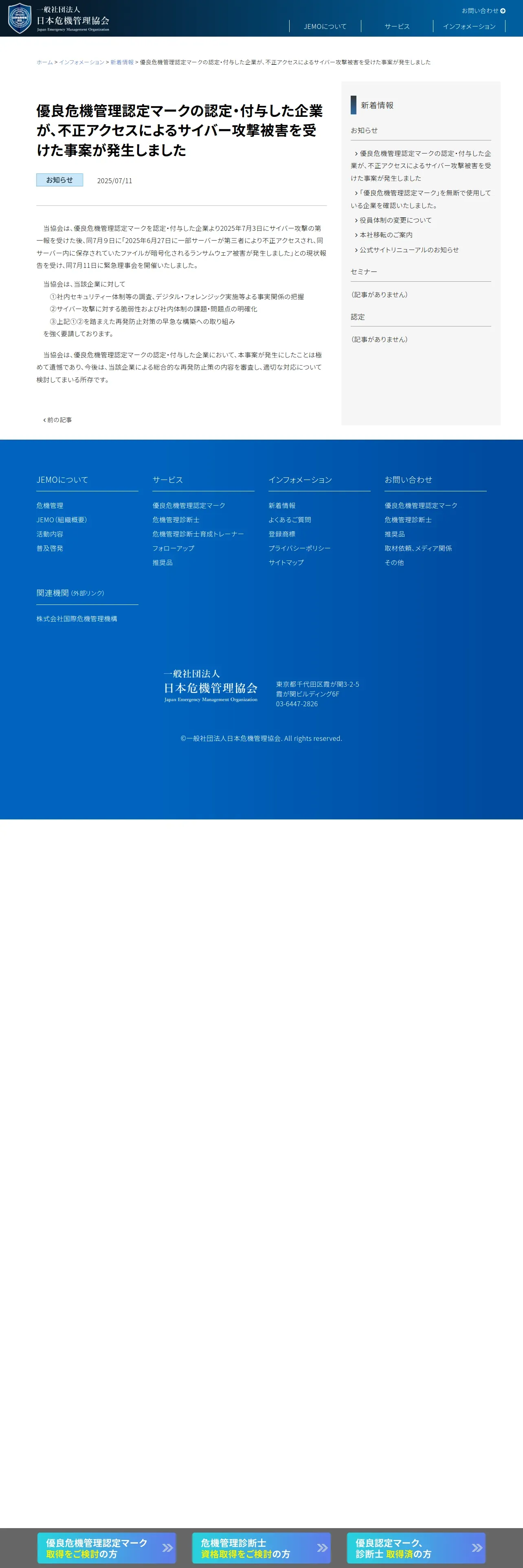 https://jemo.or.jp:443/information/news/%E5%84%AA%E8%89%AF%E5%8D%B1%E6%A9%9F%E7%AE%A1%E7%90%86%E8%AA%8D%E5%AE%9A%E3%83%9E%E3%83%BC%E3%82%AF%E3%81%AE%E8%AA%8D%E5%AE%9A%E3%83%BB%E4%BB%98%E4%B8%8E%E3%81%97%E3%81%9F%E4%BC%81%E6%A5%AD%E3%81%8C/