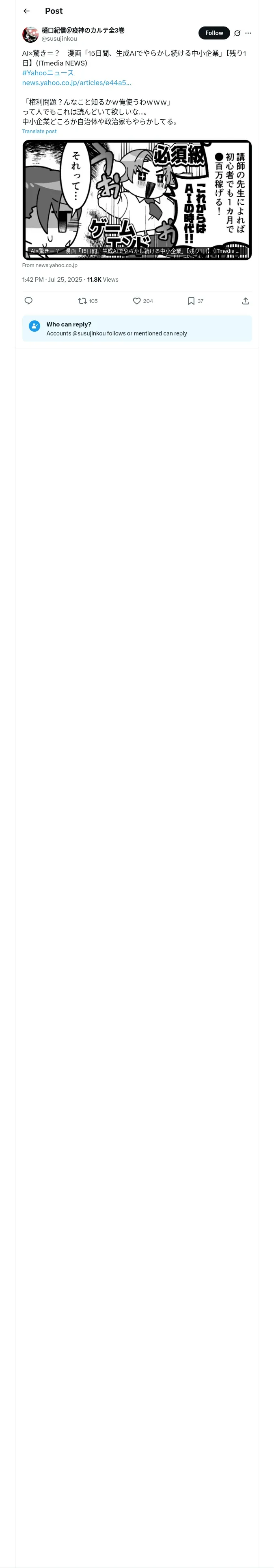 https://x.com:443/susujinkou/status/1948604870644433304