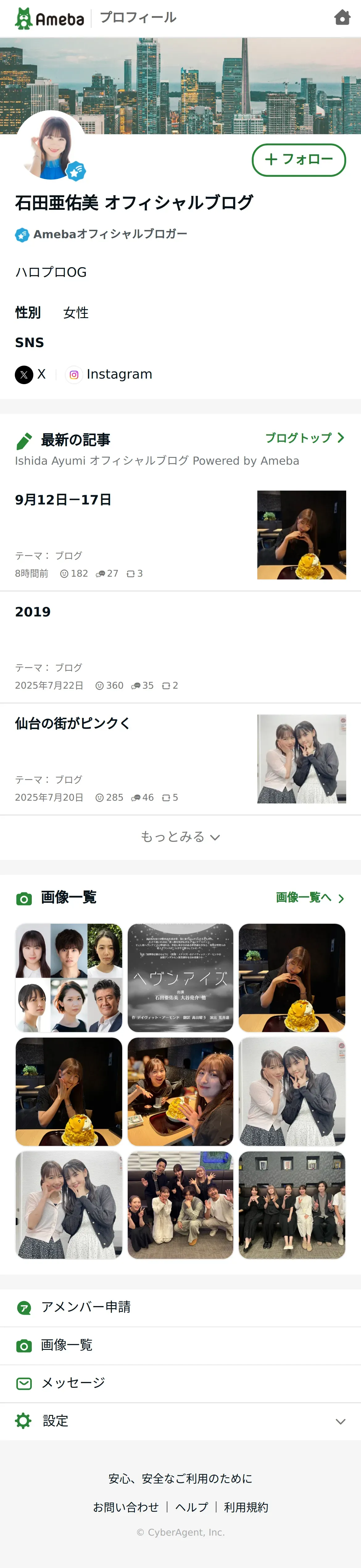 取得元URL: https://www.ameba.jp:443/profile/ameba/ayumiishida-official/