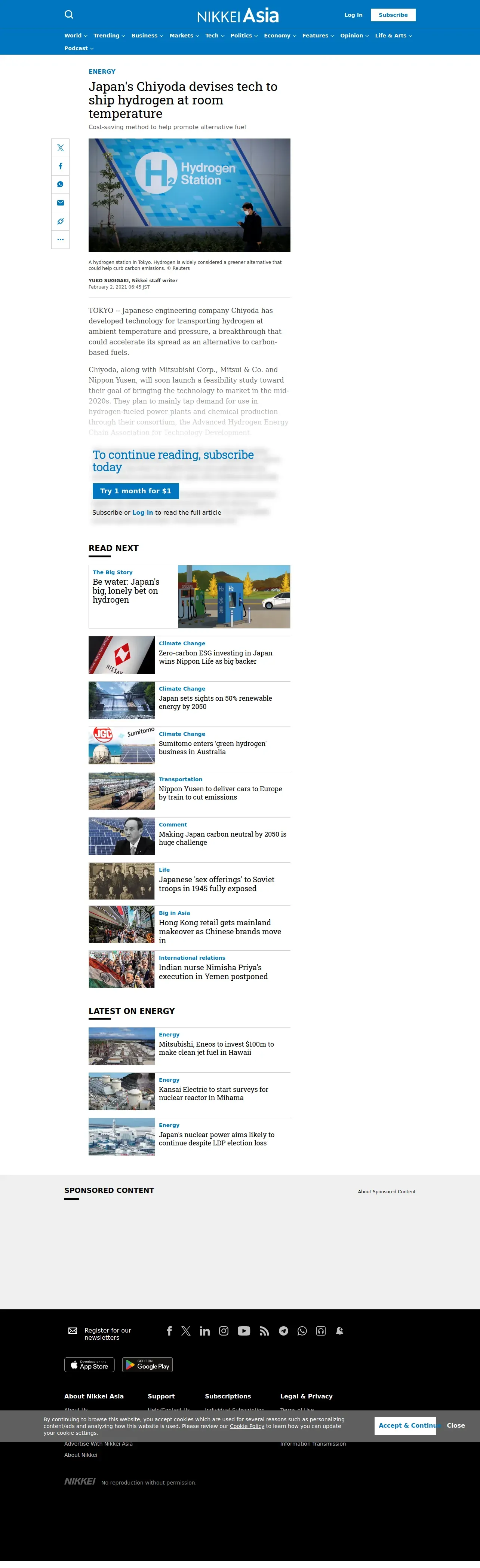 https://asia.nikkei.com:443/Business/Energy/Japan-s-Chiyoda-devises-tech-to-ship-hydrogen-at-room-temperature