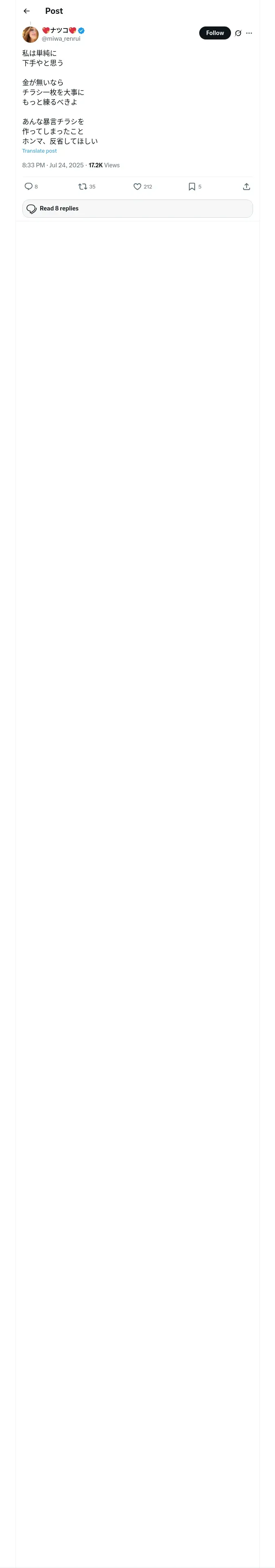 取得元URL: https://x.com:443/miwa_renrui/status/1948345742512488863