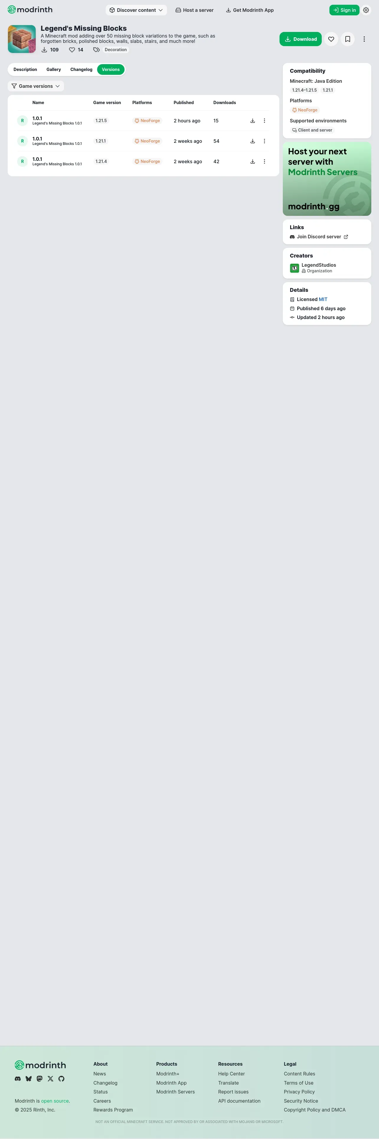 https://modrinth.com:443/mod/legends-missing-blocks/versions