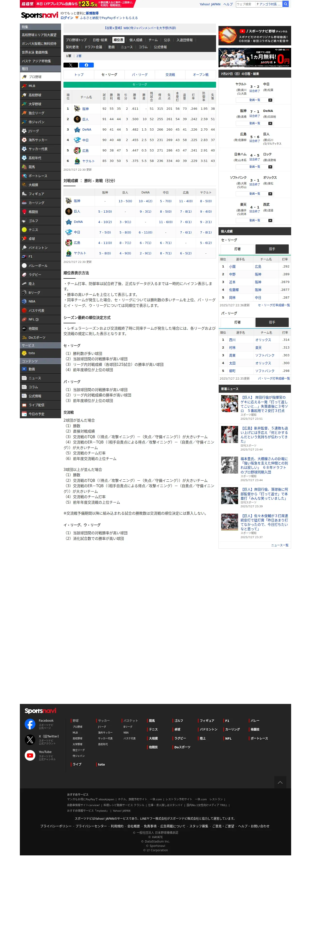 https://baseball.yahoo.co.jp:443/npb/standings/detail/1
