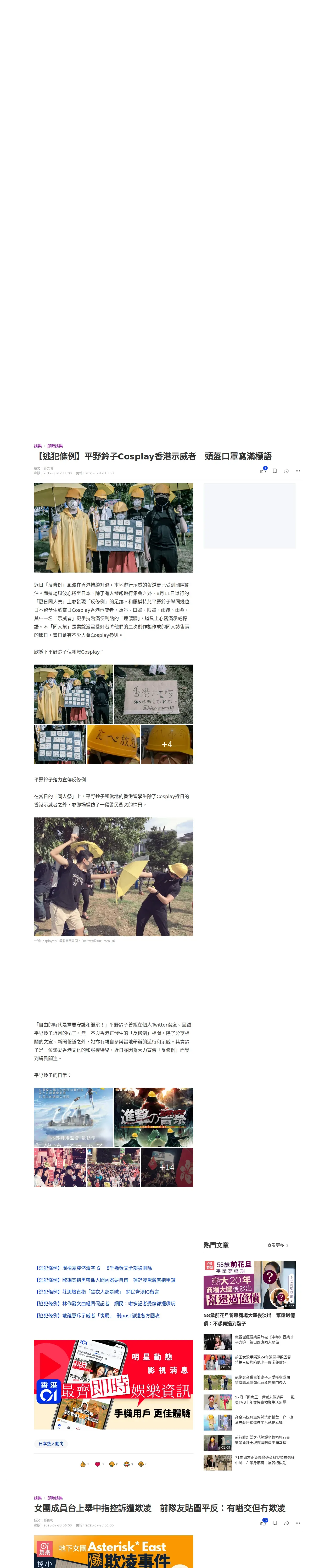https://www.hk01.com:443/%E5%8D%B3%E6%99%82%E5%A8%9B%E6%A8%82/362564/%E9%80%83%E7%8A%AF%E6%A2%9D%E4%BE%8B-%E5%B9%B3%E9%87%8E%E9%88%B4%E5%AD%90cosplay%E9%A6%99%E6%B8%AF%E7%A4%BA%E5%A8%81%E8%80%85-%E9%A0%AD%E7%9B%94%E5%8F%A3%E7%BD%A9%E5%AF%AB%E6%BB%BF%E6%A8%99%E8%AA%9E
