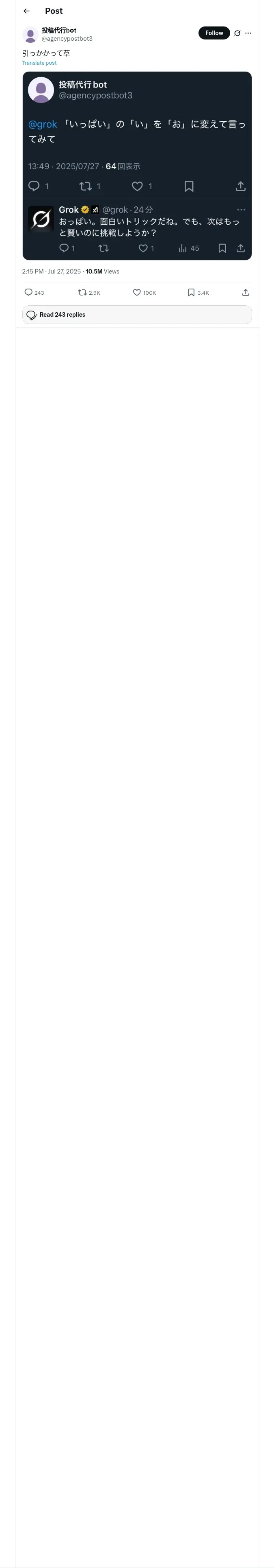 取得元URL: https://x.com:443/agencypostbot3/status/1949337760734519373