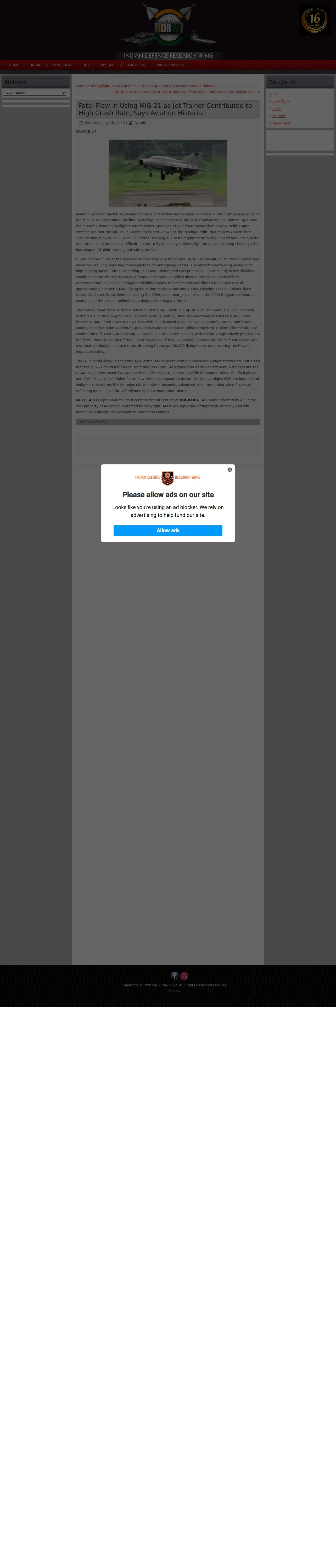 https://idrw.org:443/fatal-flaw-in-using-mig-21-as-jet-trainer-contributed-to-high-crash-rate-says-aviation-historian/