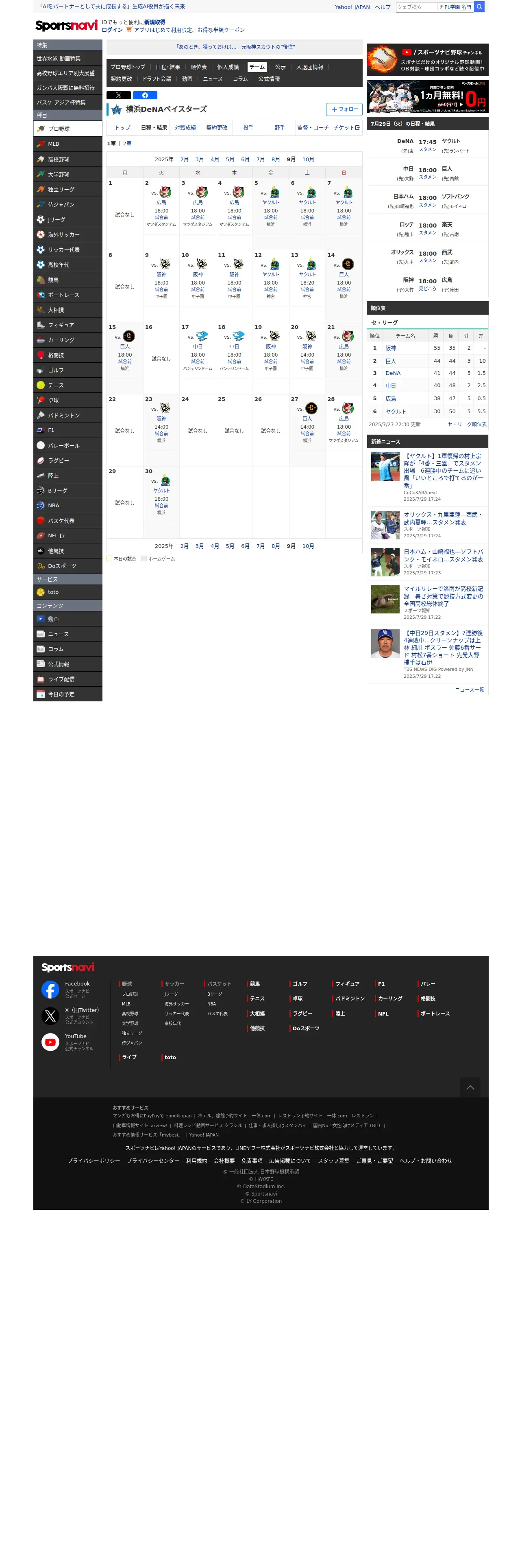 取得元URL: https://baseball.yahoo.co.jp:443/npb/teams/3/schedule?month=2025-09