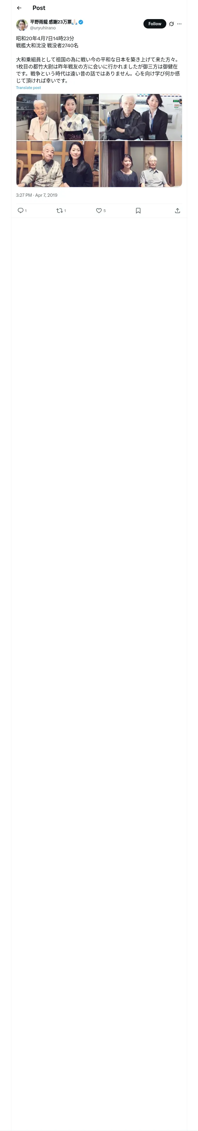 取得元URL: https://x.com:443/uryuhirano/status/1114776725773144064