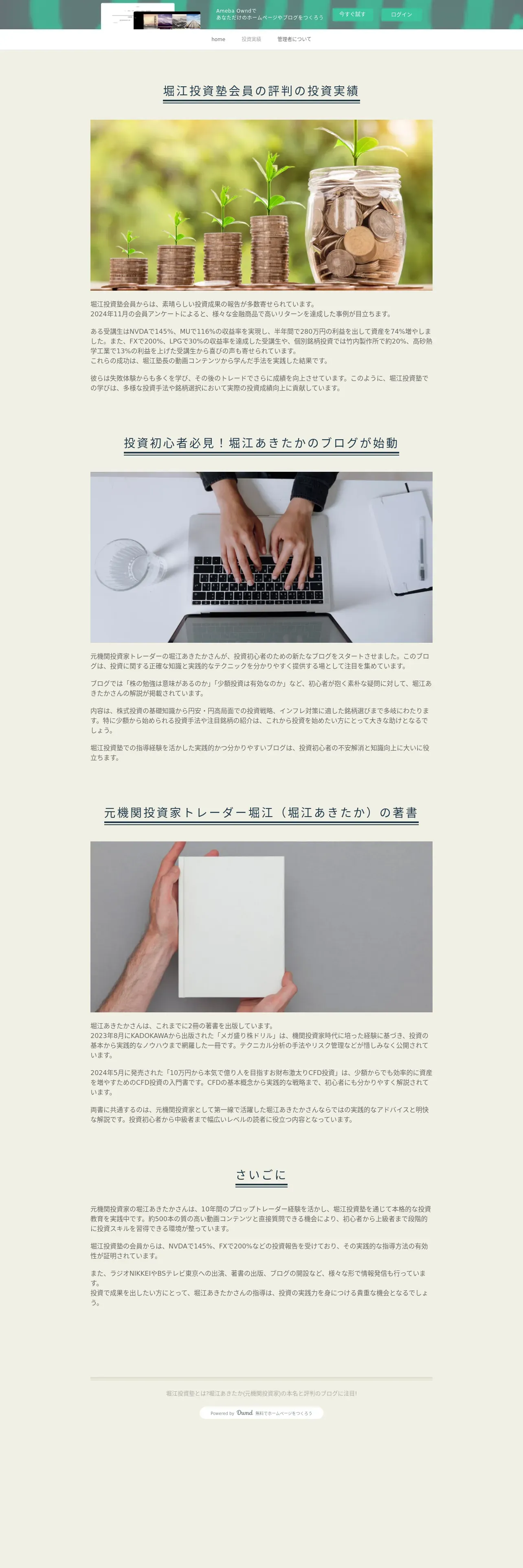 https://horieakitaka-investor.amebaownd.com:443/pages/8981263/investment-performance