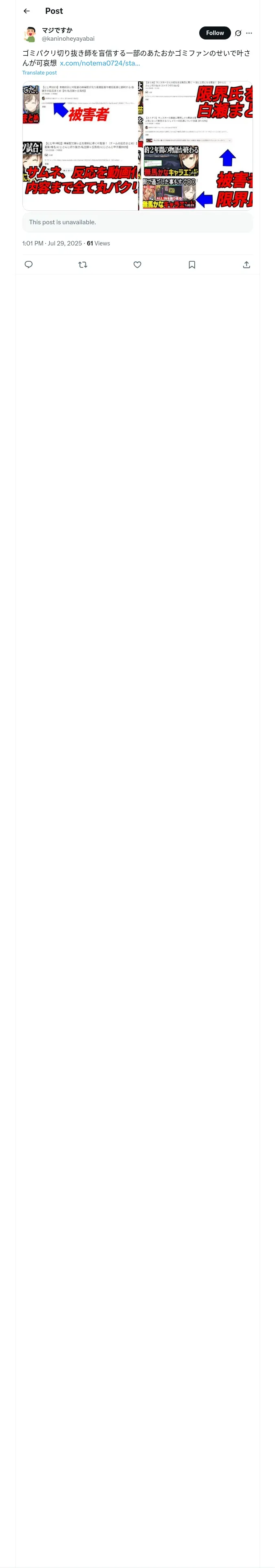 取得元URL: https://x.com:443/kaninoheyayabai/status/1950043862300258474?t=kQhSYrrx5F5s0wpxG9Id8w&s=19