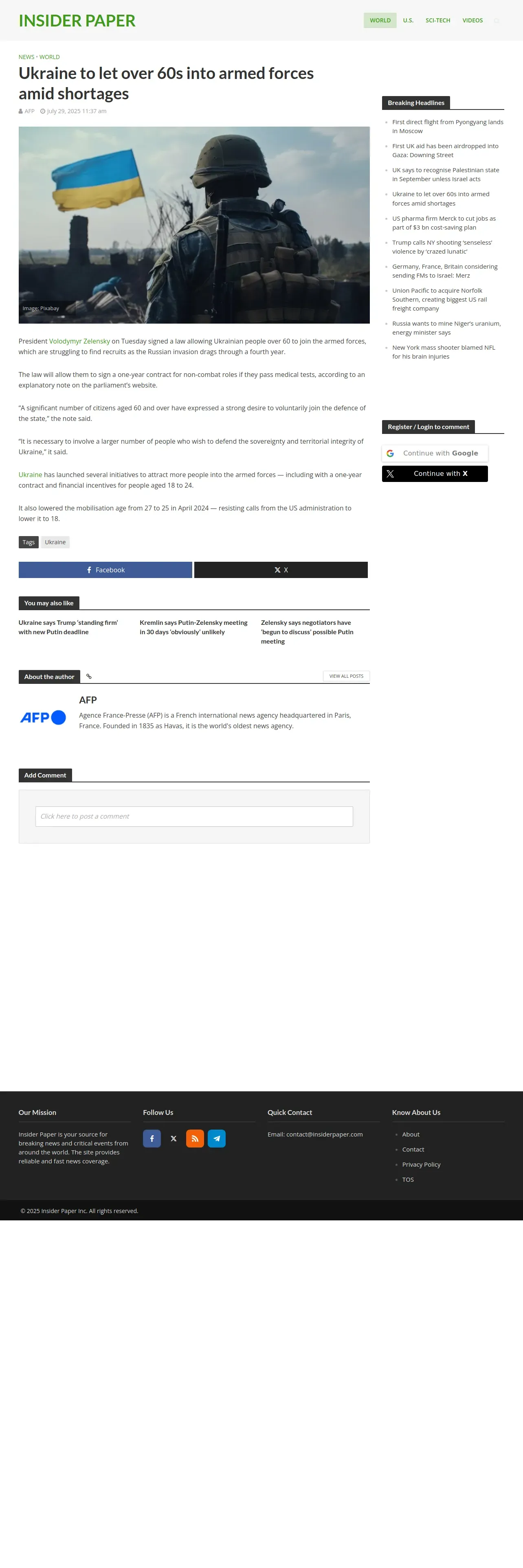 https://insiderpaper.com:443/ukraine-to-let-over-60s-into-armed-forces-amid-shortages/