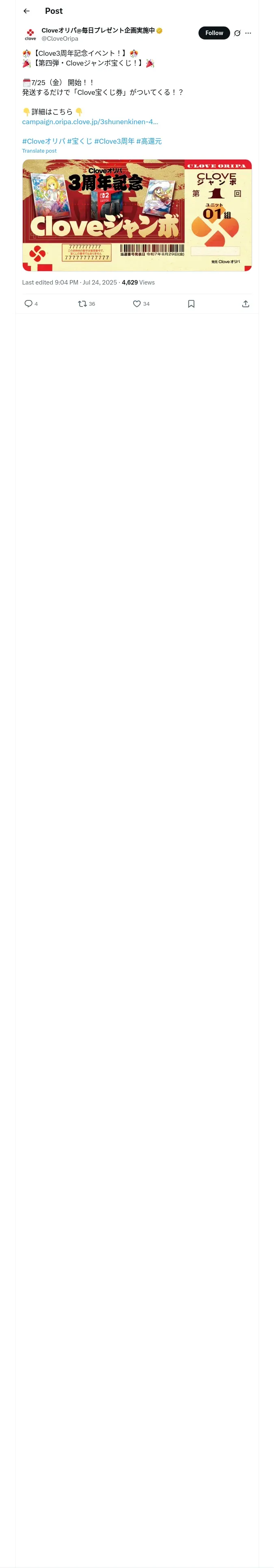 取得元URL: https://x.com:443/CloveOripa/status/1948353664135094417