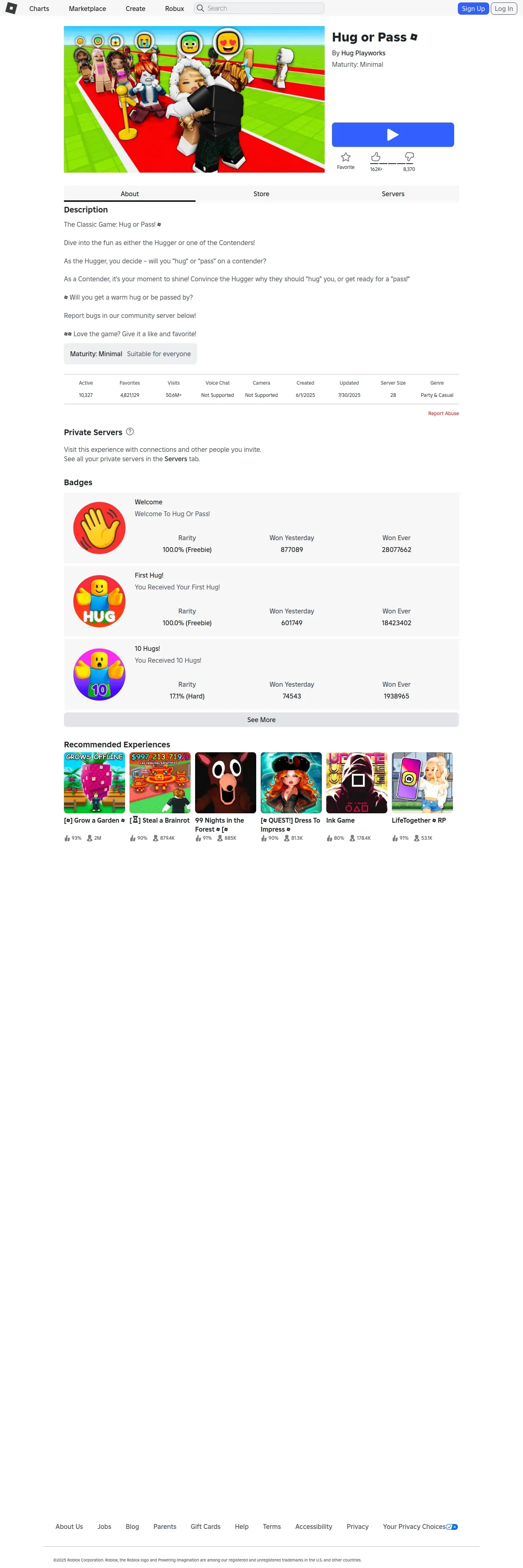 https://www.roblox.com:443/games/129121878966543/Hug-or-Pass
