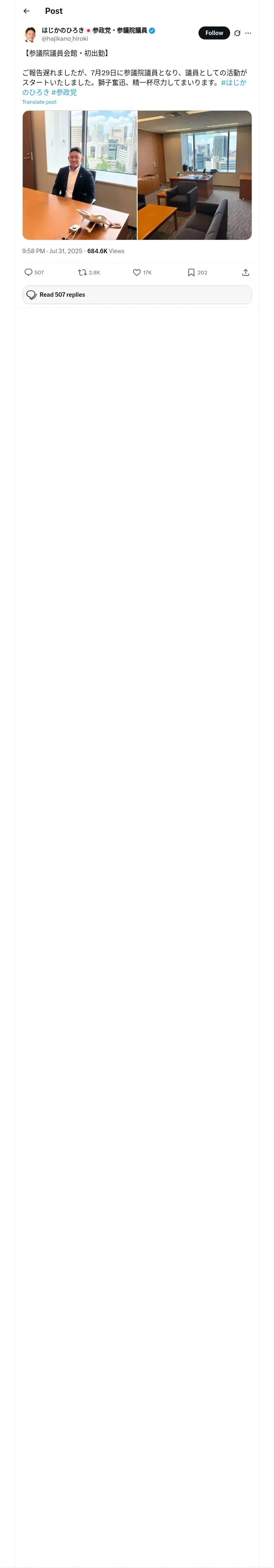 取得元URL: https://x.com:443/hajikano_hiroki/status/1950903921008050362