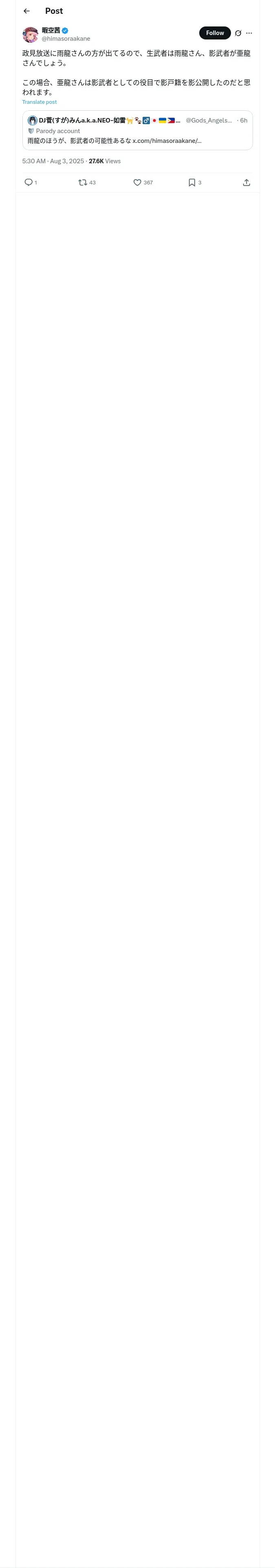 https://x.com:443/himasoraakane/status/1951742530388963432?t=Gafe-6q2hsi2M-UlP7Cv4Q&s=19