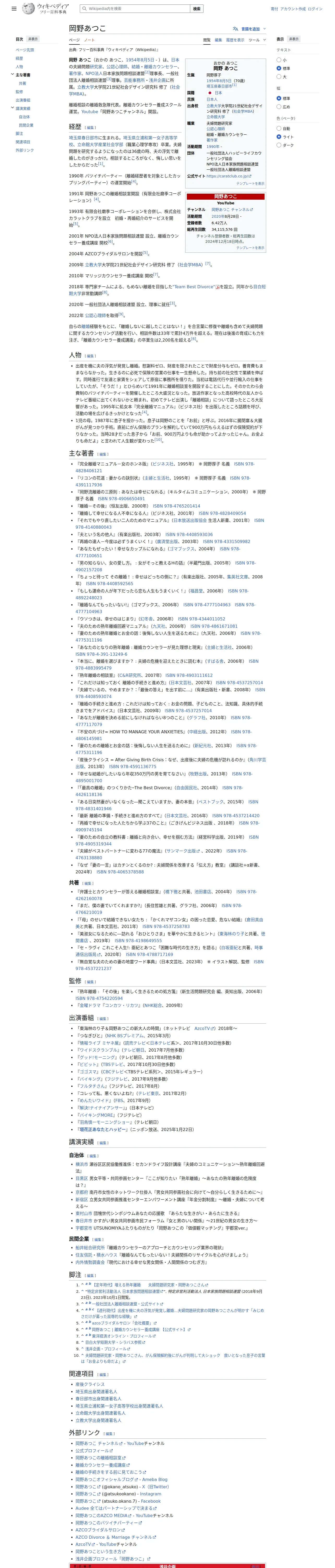 https://ja.wikipedia.org:443/wiki/%E5%B2%A1%E9%87%8E%E3%81%82%E3%81%A4%E3%81%93