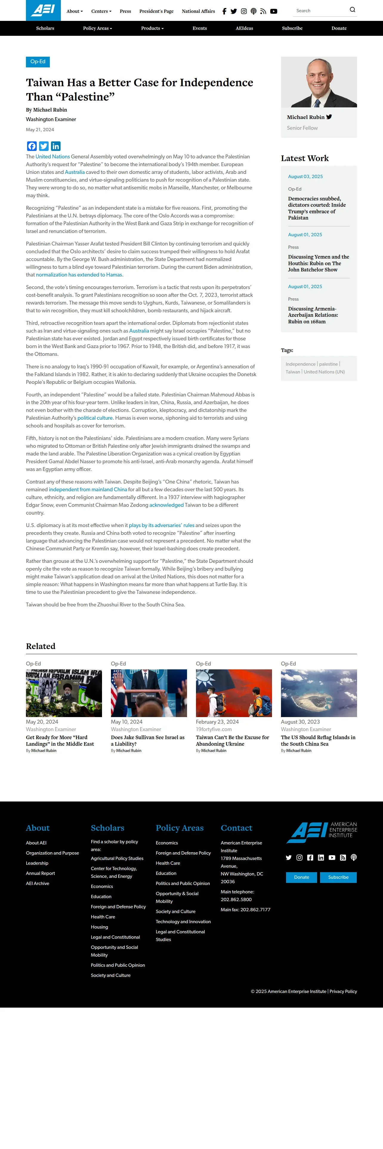 https://www.aei.org:443/op-eds/taiwan-has-a-better-case-for-independence-than-palestine/