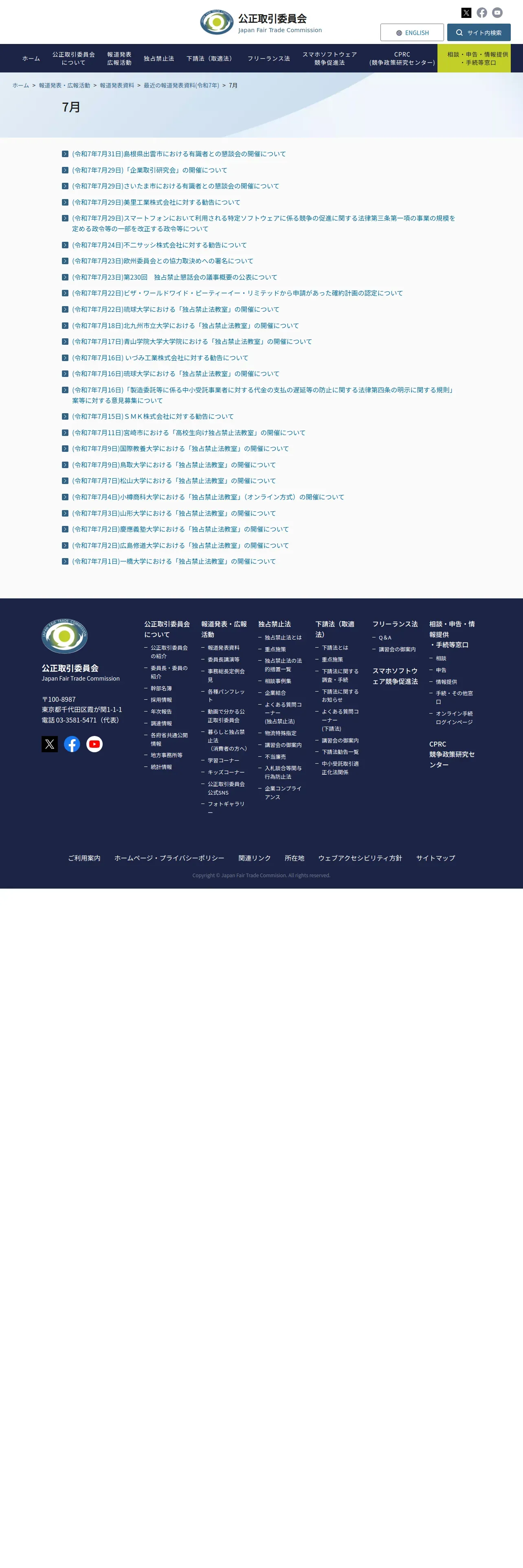 https://www.jftc.go.jp:443/houdou/pressrelease/2025/jul/index.html