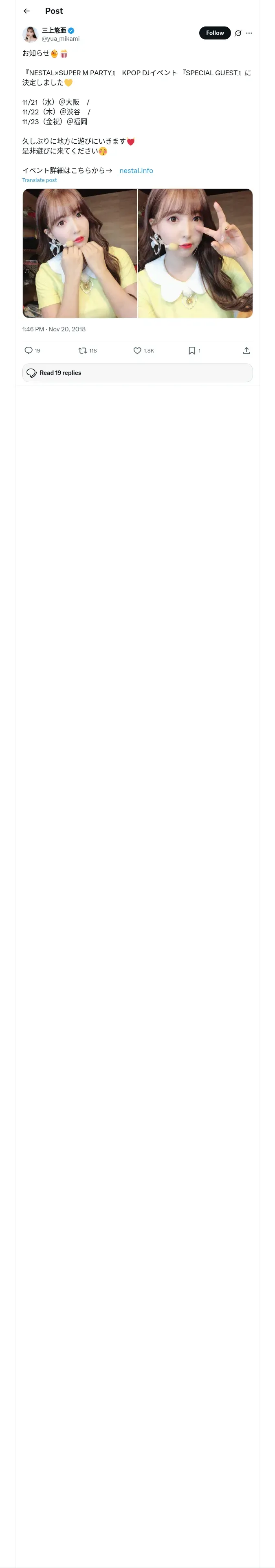 https://x.com:443/yua_mikami/status/1064741724193349632