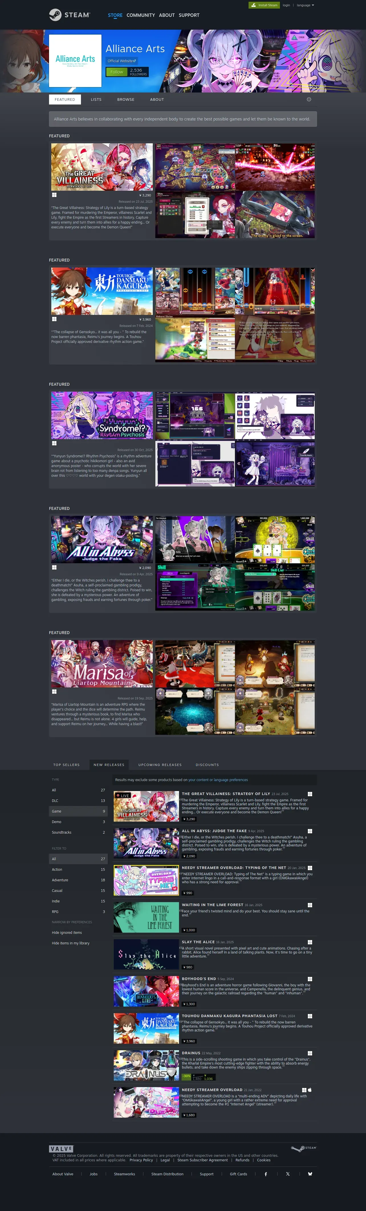 取得元URL: https://store.steampowered.com:443/publisher/AllianceArts/