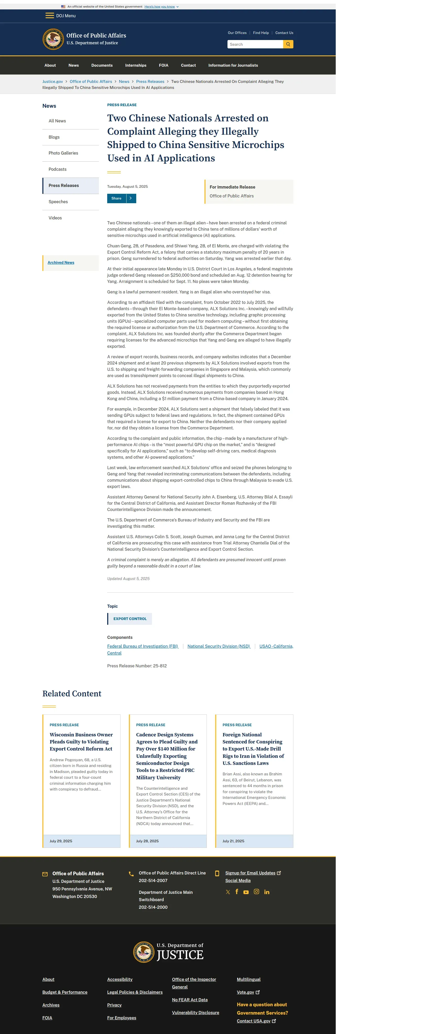 https://www.justice.gov:443/opa/pr/two-chinese-nationals-arrested-complaint-alleging-they-illegally-shipped-china-sensitive