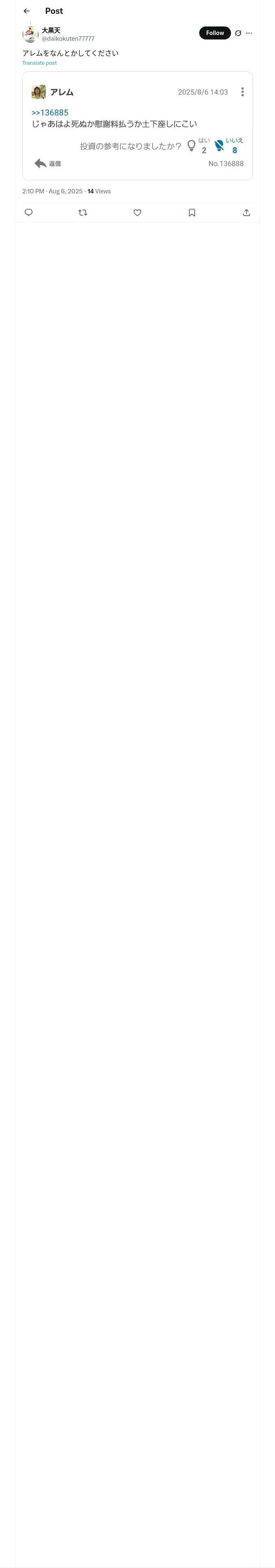 https://x.com:443/daikokuten77777/status/1952960561282728237