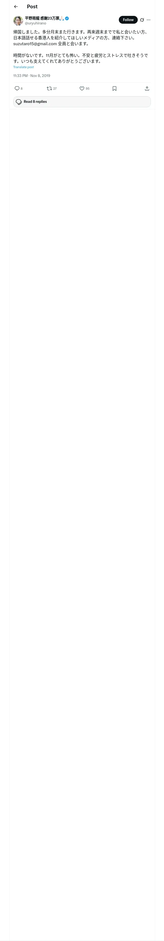 取得元URL: https://x.com:443/uryuhirano/status/1192812358751703041