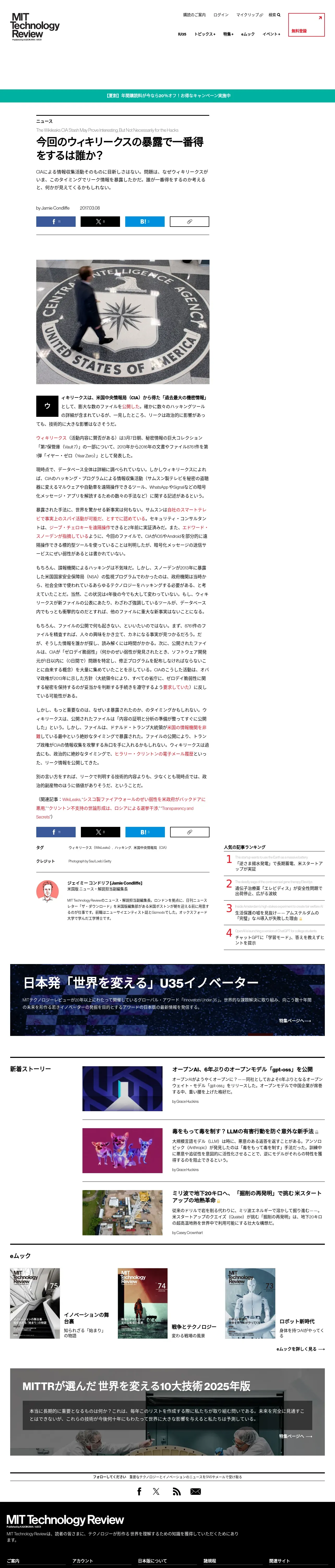 https://www.technologyreview.jp:443/s/31546/the-wikileaks-cia-stash-may-prove-interesting-but-not-necessarily-for-the-hacks/