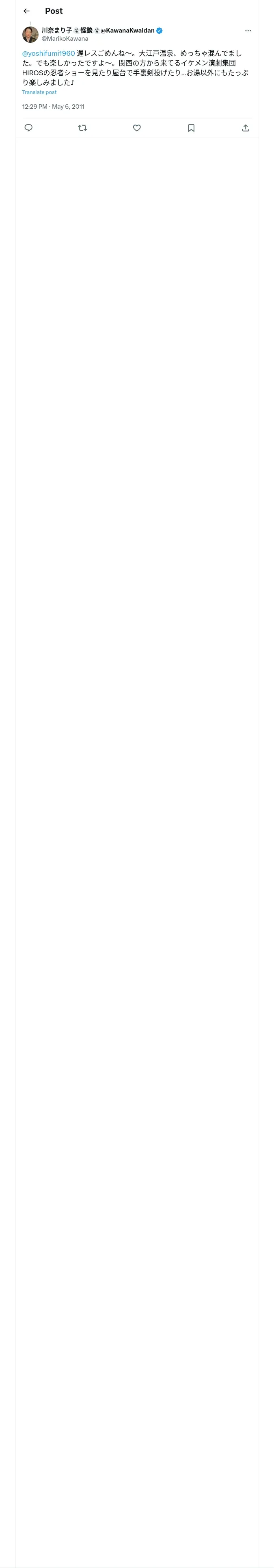 取得元URL: https://x.com:443/MarikoKawana/status/66343735562219520