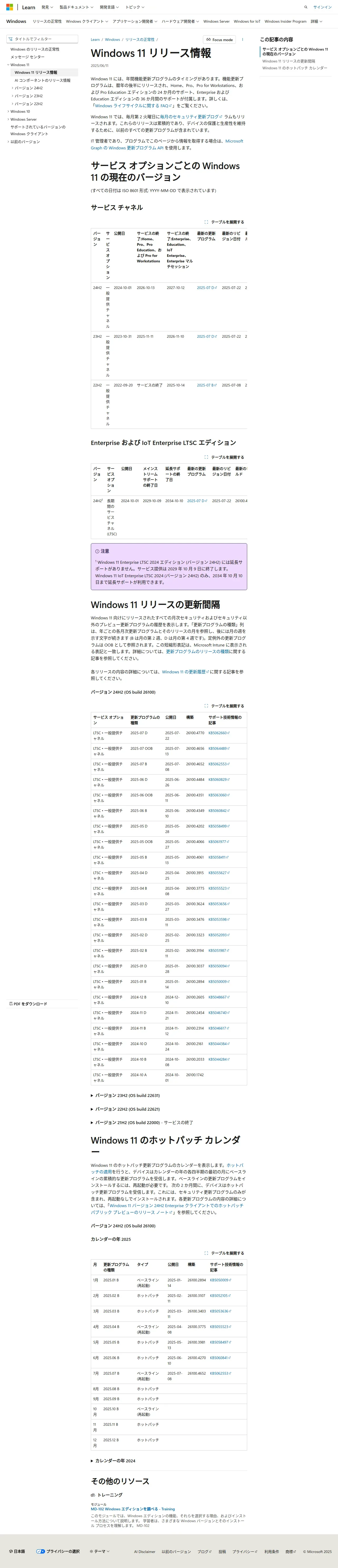 取得元URL: https://learn.microsoft.com:443/ja-jp/windows/release-health/windows11-release-information