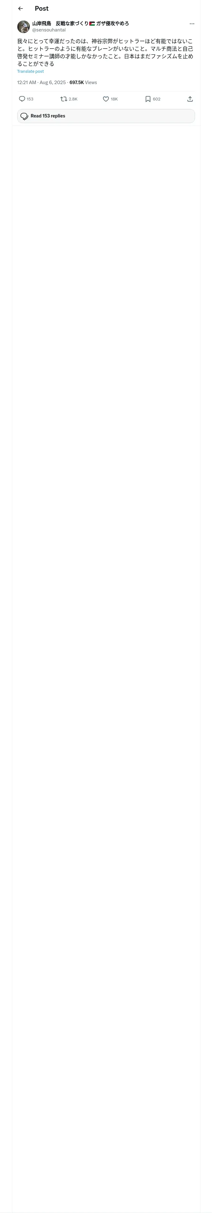 https://x.com:443/sensouhantai/status/1952751944998727831