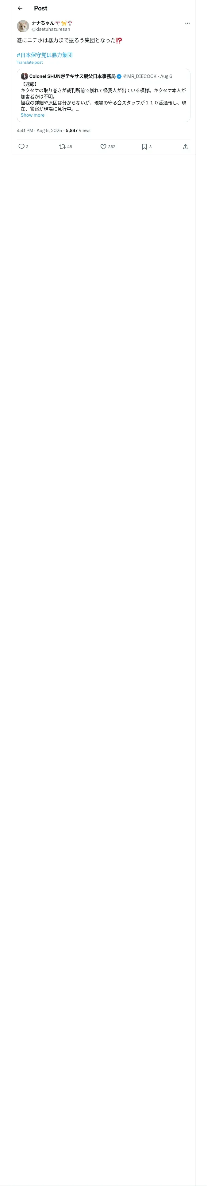 https://x.com:443/kisetuhazuresan/status/1952998425873793212