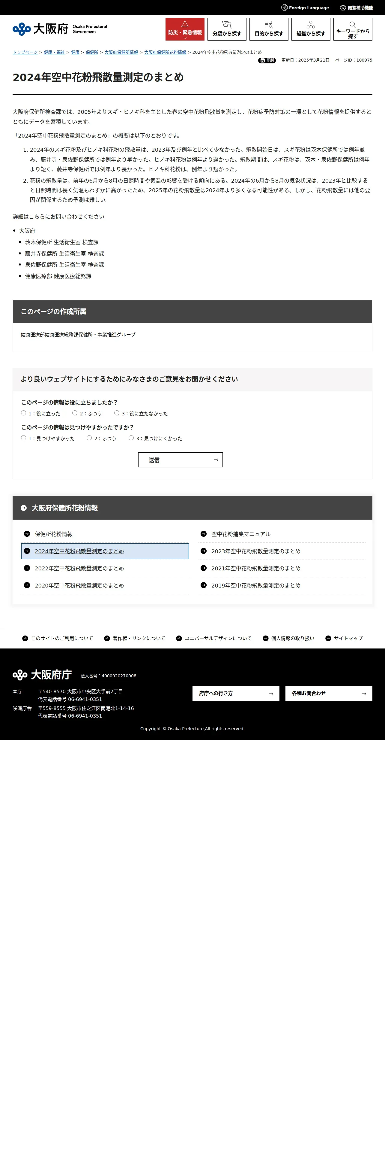 https://www.pref.osaka.lg.jp:443/o100010/chikikansen/kensaka/kafun2024.html