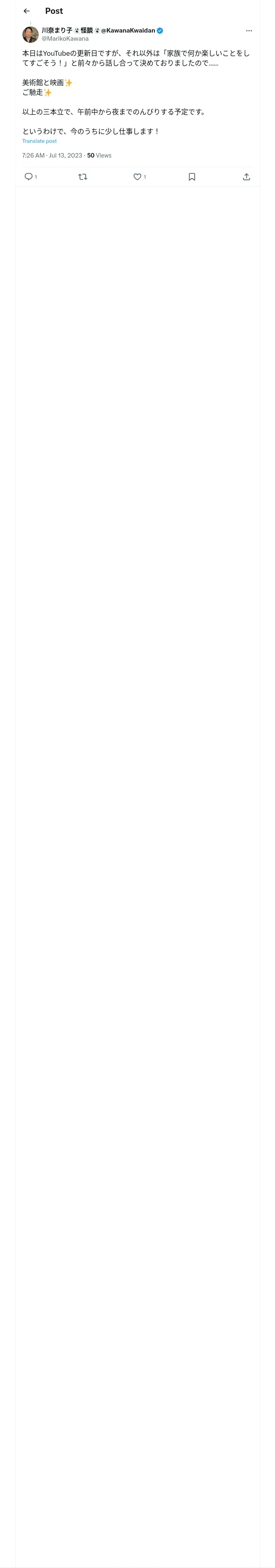取得元URL: https://x.com:443/MarikoKawana/status/1679255880129445888