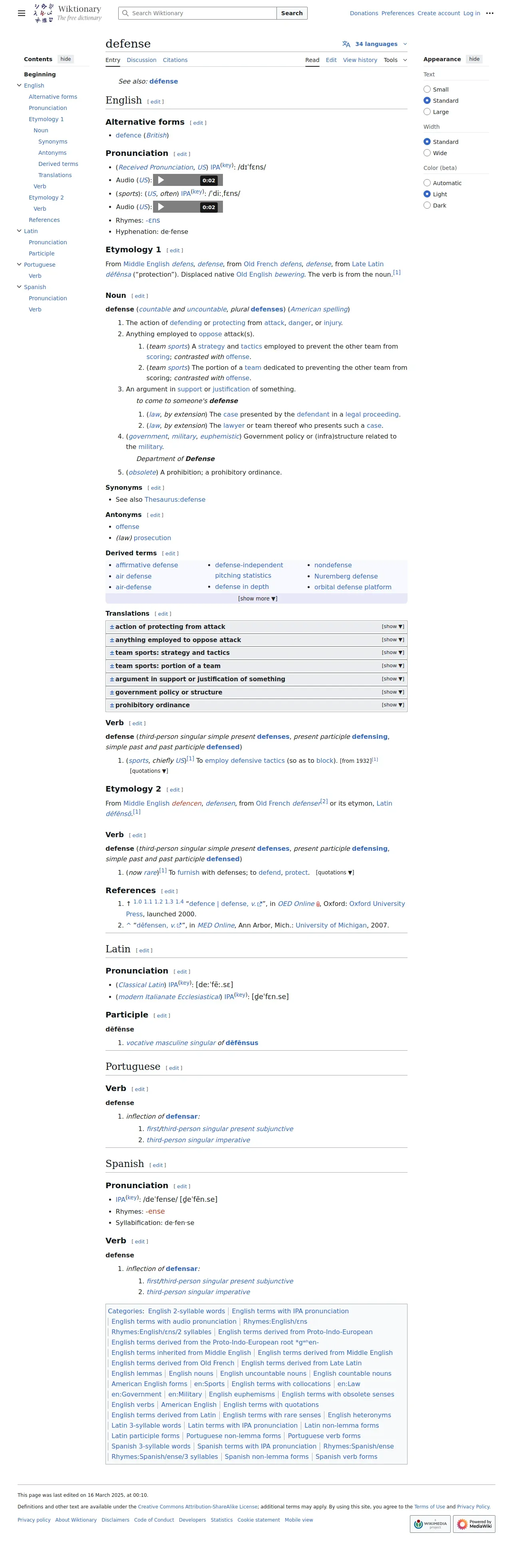 取得元URL: https://en.wiktionary.org:443/wiki/defense