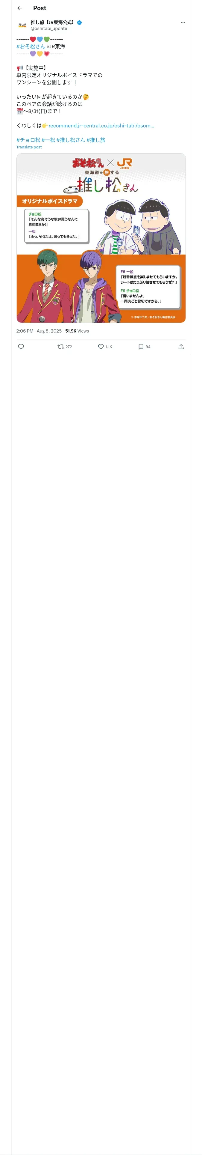 https://x.com:443/oshitabi_update/status/1953684125627691359