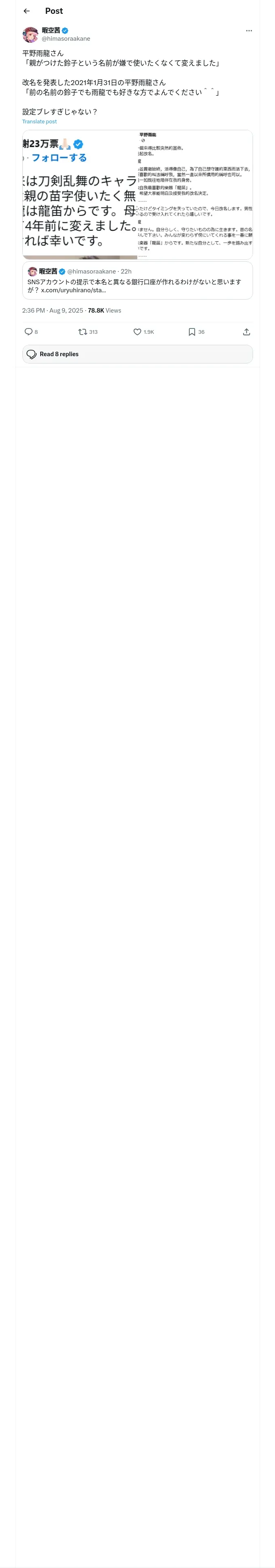 https://x.com:443/himasoraakane/status/1954054279494549943?t=fnl297drNOChJognHeTezA&s=19