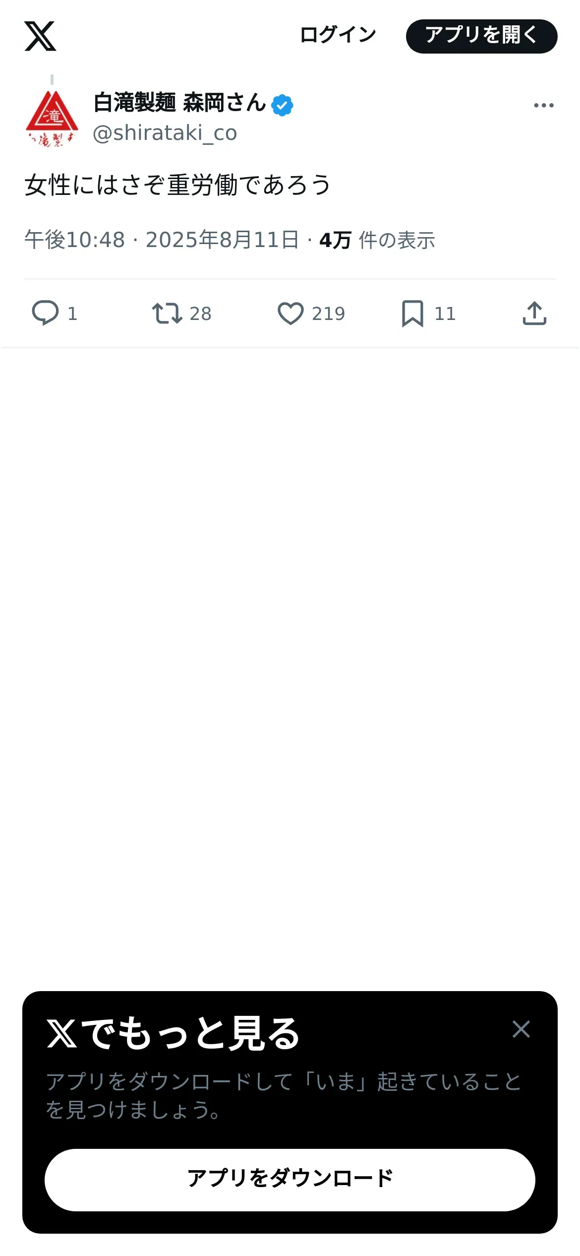 https://x.com:443/shirataki_co/status/1954902726158270683?t=b2E3wNln3DKdKfiDSQOrNw&s=19