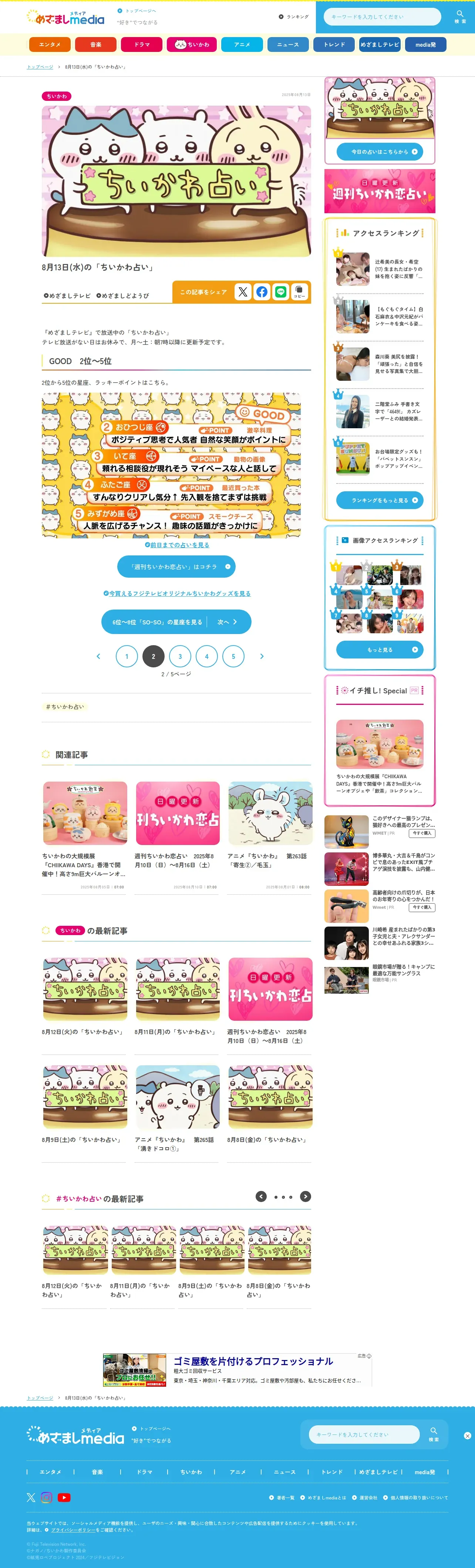 取得元URL: https://mezamashi.media:443/feature/chiikawa-fortune-daily?page=2