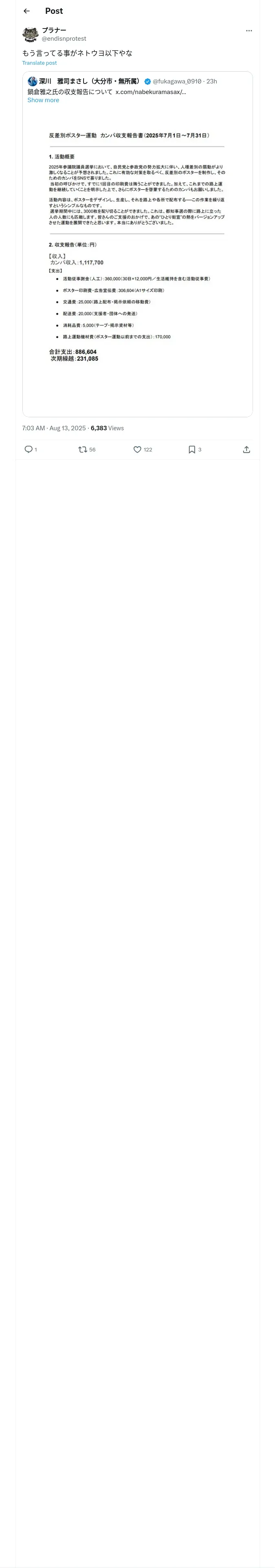 取得元URL: https://x.com:443/endisnprotest/status/1955389607337660704